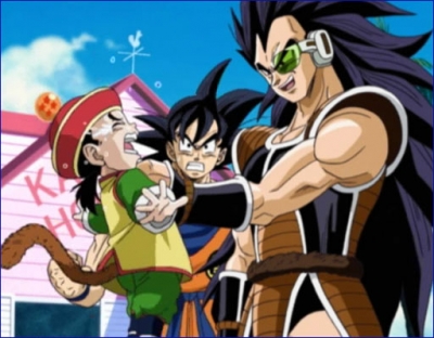 Raditz secuestra a Gohan, tras tumbar a Goku