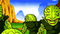 Poco después aparecen unos soldados de Freezer que atacan a Gohan y los otros y les destruyen la nave. Gohan y Krilín les atacan y les vencen sin problemas. Como no tienen nave deciden esconderse en una cueva para estudiar la situación y esconderse de los soldados. Vegeta por su parte, decide esperar a ver que hace Freezer y descubre que está matando a todos los Namekianos para conseguir las Dragon Balls. Vegeta decide que lo mejor es conseguir una Dragon Ball y luego arrebatarle las suyas a Freezer en un momento de descuido, ya que Freezer es mucho más fuerte que él y no le puede atacar abiertamente.