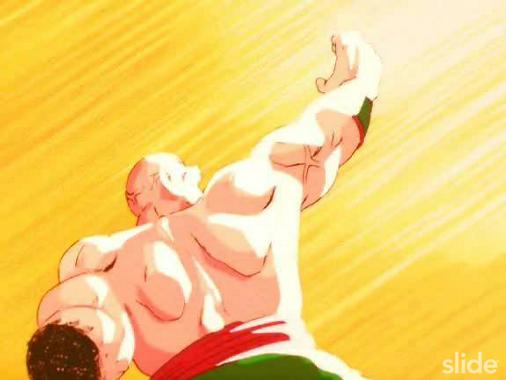 No tarda Goku en darse cuenta de que Vegeta es superior a él incluso utilizando el golpe de Kaito (una técnica que le permite doblar su fuerza). Para superarle multiplica por tres el golpe de Kaito y lanza un Kamehameha. Pero su cuerpo sufre mucho por el exceso de energía y queda exhausto. Vegeta vuelve y crea una luna artificial convirtiéndose en mono gigante. Goku intenta crear una Bola de Energía pero Vegeta le pilla por sorpresa y le vence. En ese momento llega Gohan y distrae a Vegeta, para que Krilín le corte la cola con un Kien-San (Disco Infernal).